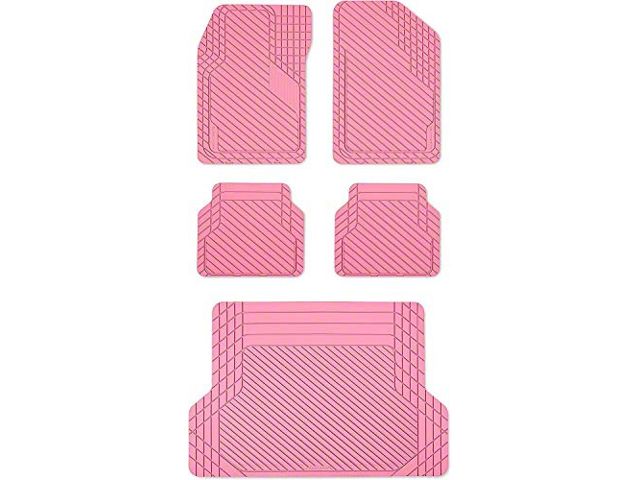 Construction and Appearance. Manufactured from 100% recyclable TPE material, these mats are built to last, offering consistent performance due to their injection-molded construction. Their sleek, pink color adds an ultramodern touch to your vehicle's interior, and the contoured 3-dimensional design channels debris into reservoirs for easy cleanup.