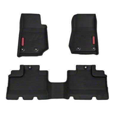 Durable All-Weather Protection. The BaseLayer Custom-Fit All Weather Front and Rear Floor Liners with Red Logo provide comprehensive protection for your Jeep Wrangler JK's interior. Designed to handle mud, water, and debris, these liners maintain a clean cabin while enhancing the aesthetics with their sleek black color and subtle red logo.