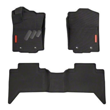 Application. The BaseLayer Custom-Fit All Weather Front and Rear Floor Liners with Red Logo fit 2016-2023 Tacoma Double Cab models.