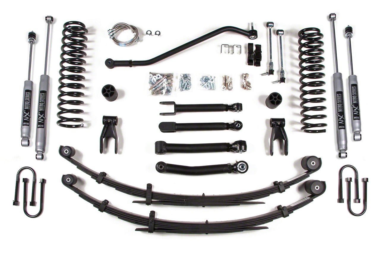 Installation. Putting this BDS 4.50-Inch Coil Spring Suspension Lift Kit with Rear Leaf Springs and NX2 Nitro Shocks on your 4WD Jeep Cherokee XJ takes a day to install.