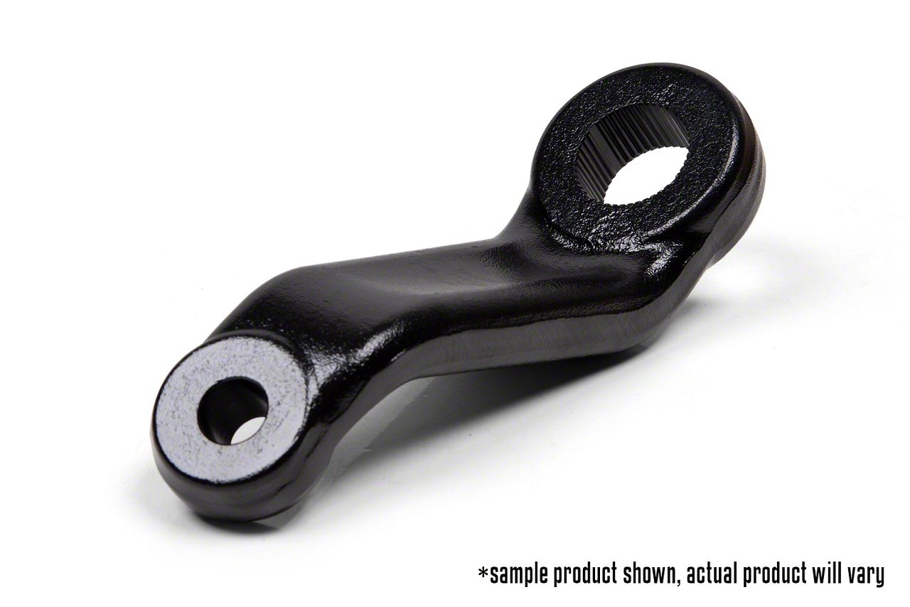 Construction and Appearance. Manufactured from forged high-strength steel, this drop pitman arm is engineered for maximum durability under stress. Its robust build handles the demands of lifted suspension systems, resisting flex and maintaining alignment under rugged driving conditions. The black finish provides a clean, corrosion-resistant appearance.