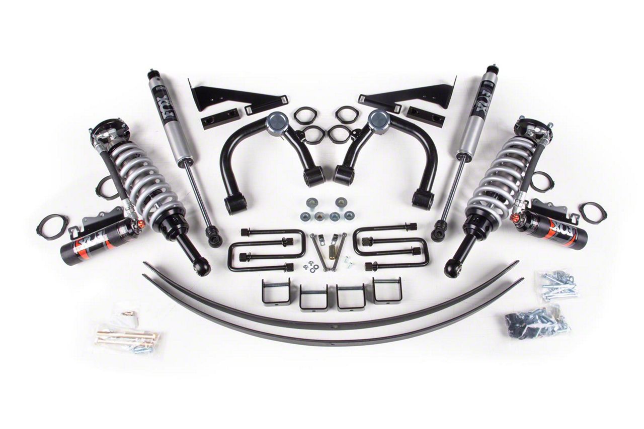 Enhanced Lift and Performance. The BDS 2-Inch Suspension Lift Kit is designed to provide your vehicle with a 2-inch lift, enhancing both its stance and off-road capability. This kit includes premium FOX 2.5 Performance Elite Coil-Overs and 2.0 Performance Shocks, delivering improved wheel travel, a softer ride, and precise tuning through the DSC Adjuster.