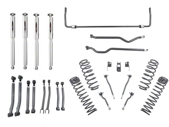 Undeniable Performance. In factory specification, the Jeep Wrangler JL is undeniably one of the best off-roaders there is. Since not everyone who buys a Jeep is interested in off-road performance though, Jeep had to compromise a little bit. If you want to unlock your Wrangler's true potential and unleash the off-roading machine that lies within, you'll have to do it using a suspension lift kit like this premium product from Belltech. Offering an overall 4-inch lift, this kit is great at giving your Jeep a more aggressive stance and exponentially greater off-road capability.