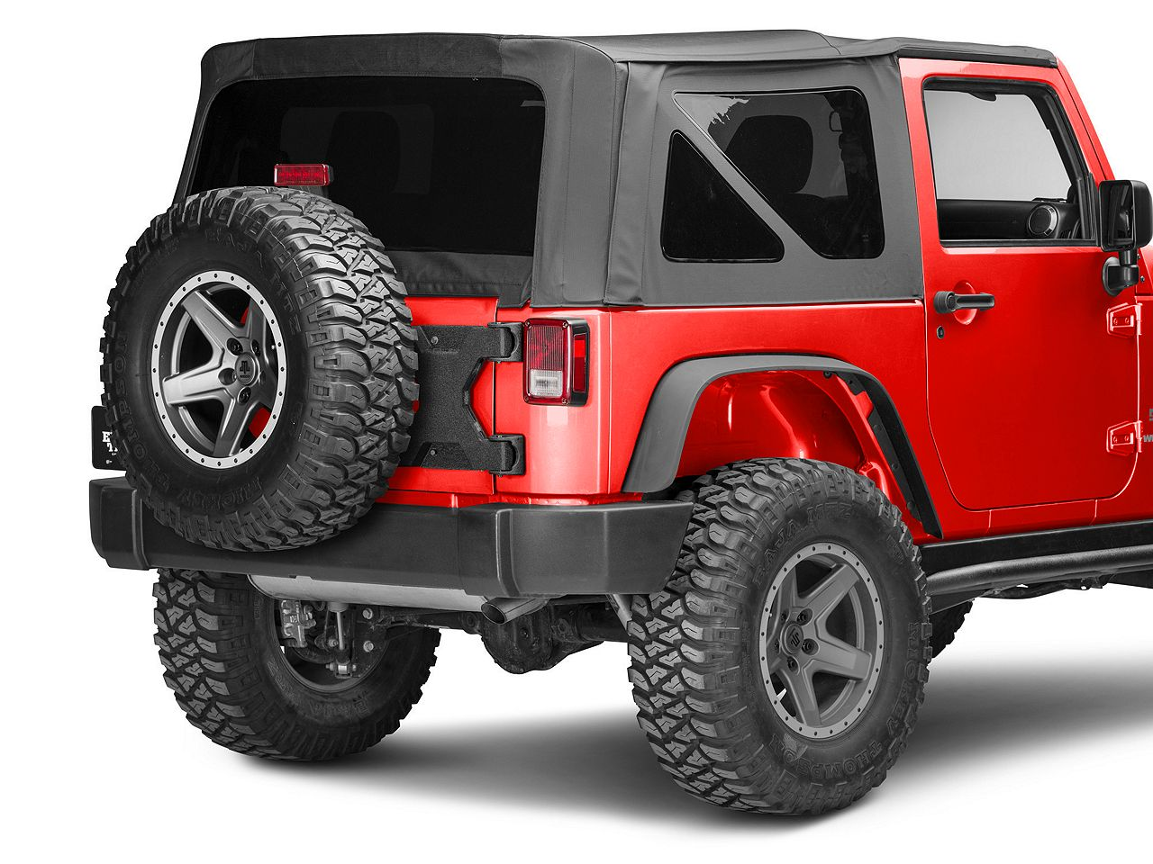 If you plan on off-roading with your Jeep Wrangler JK, it's always a good idea to bring a spare tire with you. While that's a given, many off-roaders overlook the importance of having a strong rear tire carrier, especially if you plan on adding larger, heavier wheels and tires to your Jeep. For these reasons, it's always a good idea to keep your spare wheel and tire secure back there, and Barricade HD Tire Carrier Brackets can help you out. These brackets are made with durable 5mm carbon steel plating, and their black powered finish looks phenomenal. Other brands like RedRock are also available, along with licensed OEM-style replacement options.