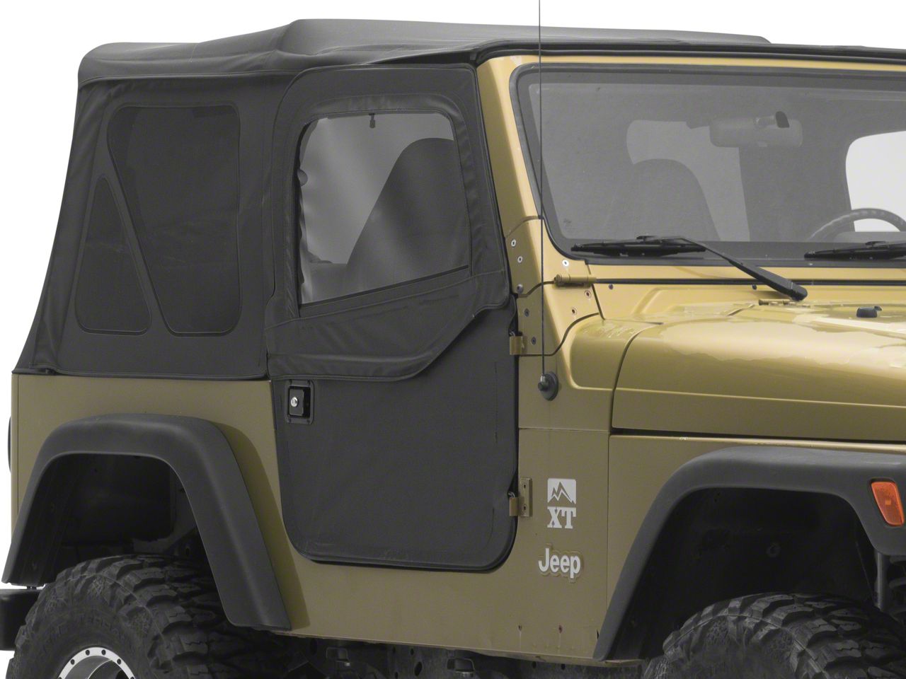 Provide Off-Road Protection. Survive the harshness of the trail in your Jeep Wrangler TJ with the Bestop 2-Piece Full Fabric Doors - Black Diamond. Made of tough fabric, these doors will always look great as they keep away harmful environmental elements.