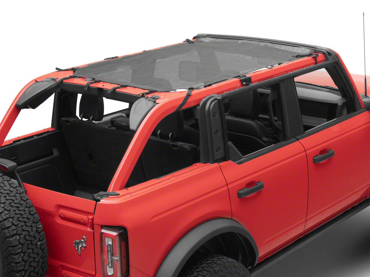 Application. The Bestop Mesh Safari Access Bimini fits 2021-2026 Bronco 4-Door models.