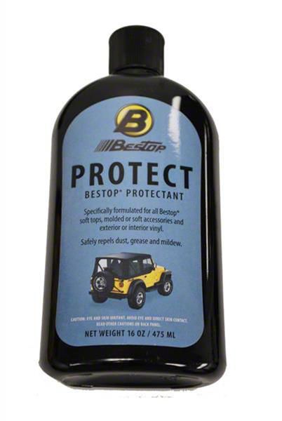 Gets the Job Done. Extend the life of your soft top with Bestop Soft Top Protectant. Specially designed for non-twill fabrics, this protectant comes in a convenient 16-ounce bottle, making it easy to apply and store. Formulated to offer reliable protection against dust, dirt, grease, and mildew, it ensures your soft top remains in pristine condition. With regular use, it effectively lessens the impact of fading, cracking, and hardening caused by exposure to the elements and UV rays, keeping your soft top looking new and vibrant.