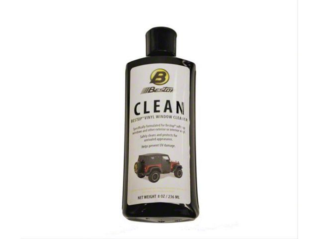 Multi-Functional Cleaner. Bestop Soft Top Vinyl Window Cleaner is the perfect solution for removing stains and minor scratches on your windows. It also helps provide UV resistance to protect your windows from sun damage and keep them looking new for longer. This product is safe to use and environmentally friendly. Plus, it polishes your windows to a streak-free shine.