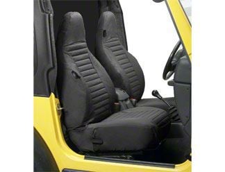 Application. The Bestop Factory High-Back Bucket Front Seat Covers; Black Denim fits on all 1997-2002 Jeep Wrangler TJ models.