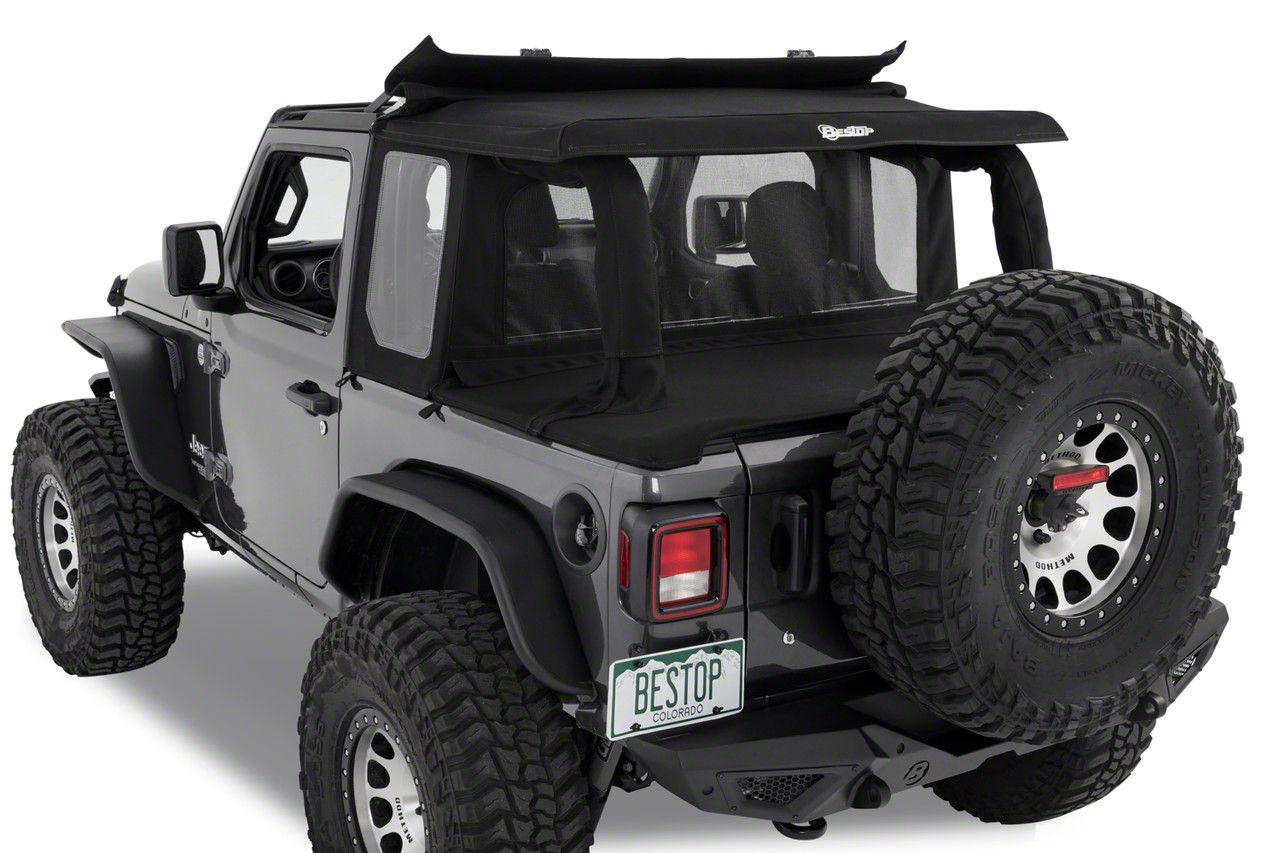 Application. The Bestop Half Top Soft Top Conversion Kit; Black Twill fits 2007-2018 Jeep Wrangler JK 2-Door models.