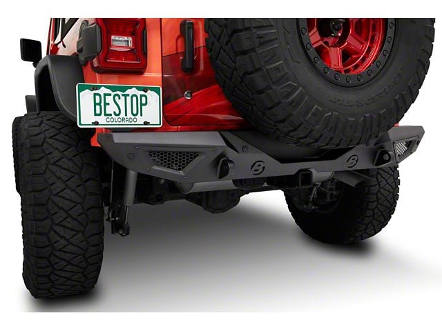Application. This Bestop HighRock 4x4 Granite Series Rear Bumper is designed to fit the 2018-2024 Jeep Wrangler JL models.