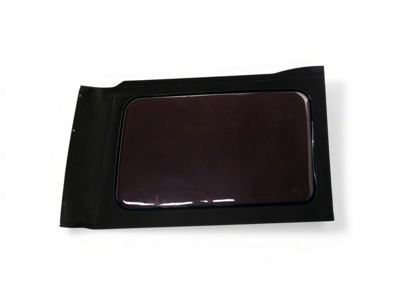 Construction and Appearance. This replacement window is crafted from high-quality black twill fabric, ensuring durability and a premium feel. The tinted window does not include a corner stiffener or panel retainer, focusing on simplicity and sleek design.