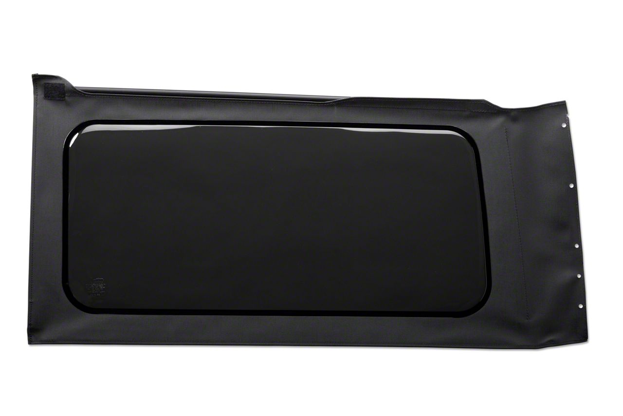 Bestop Quarter Tinted Window. The Bestop Quarter Tinted Window is designed for the driver side of 2018-2026 Jeep Wrangler JL 2-Door models with soft tops, providing a high-quality replacement for your vehicle's stock window. Featuring a black vinyl finish, this window enhances both the appearance and functionality of your Jeep.