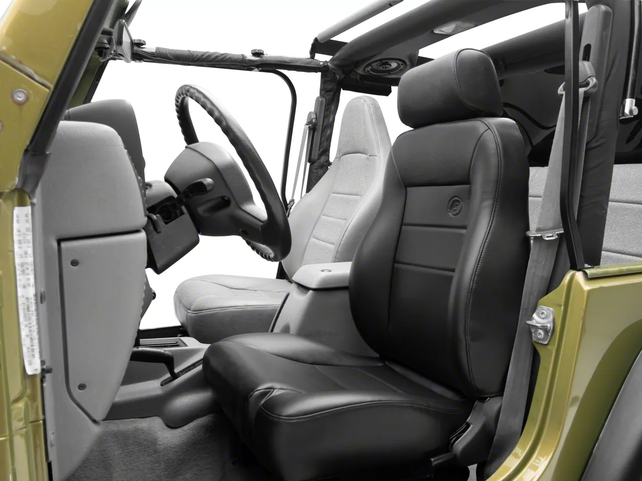 OE Style Seats. Restore comfort into your Jeep's driving and get this Bestop Trailmax II Pro All Vinyl Front Seat; Black Crush; Driver Side to replace your worn-out unit. Made for hardcore drivers, this comfortable Driving Chair offers optimal support, sufficient soft cushioning, and 20 adjustable positions to make your driving experience as relaxing and as optimal as possible. It is precision designed to fit your car model and will require little to no adjustments in making use of your stock mounting location.