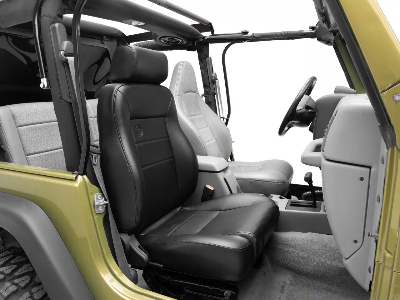 Application. The Bestop Trailmax II Pro All Vinyl Front Seat; Black Crush; Passenger Side fits 1976-2006 Jeep CJ7, Wrangler YJ and TJ models.