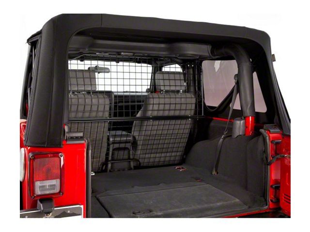 Ideal Barrier. If you're planning on taking your pets with you in your 2007-2018 Jeep Wrangler JK, it's best to install Bestop's Pet Barrier first so that you don't have to worry about them getting in the way while you drive. With a minimal effect on rear visibility, this pet barrier works to keep your yapping pet far away from the steering wheel without sacrificing your Jeep's high-end function.