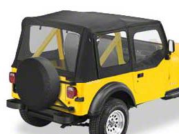 Ideal Restoration. Replace your Jeep's old soft top with the Bestop Replace-A-Top with Half Door Skins for a new yet original look. This economical option allows you to upgrade the fabric and windows of your top without having to replace the hardware or door frames. This black vinyl top features clear windows and will have your 1987 Wrangler TJ looking good as new in no time.