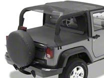 Special Features & Accessories. If you're looking for some protection from the suns rays and want your passengers to feel a cool breeze as you drive along, this full strapless bikini top is just what you're looking for. It's perfectly color matched to ensure it will fit right in with your Jeep and accessories. The header is already installed, and a cable and spring mechanism are included, which holds the bikini top in place over the door surrounds. This is the product you've been looking for if you have factory door surrounds and are seeking the best in bikini tops.