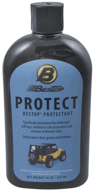 Soft Top Protectant. The Bestop Jeep Soft Top Protectant, developed exclusively by Bestop, provides a total protection system for most Bestop soft tops and accessories. Bestop recommends the protectant for soft tops, accessories, exterior/interior vinyl and fabrics.