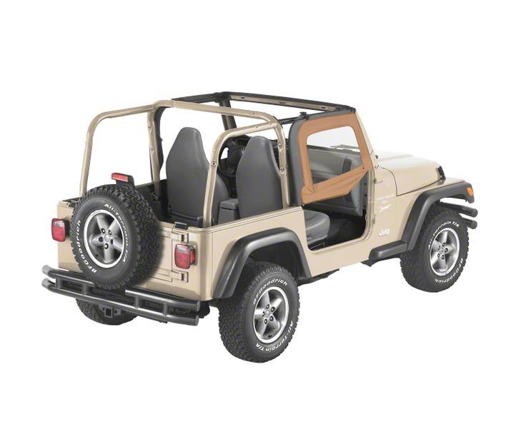 Application. These spice-colored Bestop Soft Upper Half Doors will fit 1997-2006 Jeep Wrangler TJ models.