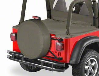 Durable Spare Tire Protection. The Bestop Spare Tire Cover is designed to protect your spare tire from harsh elements such as UV rays, moisture, and debris. Perfectly tailored for Jeep models, this cover not only shields your spare tire but also complements your vehicle's aesthetics with its stylish design and spice color.