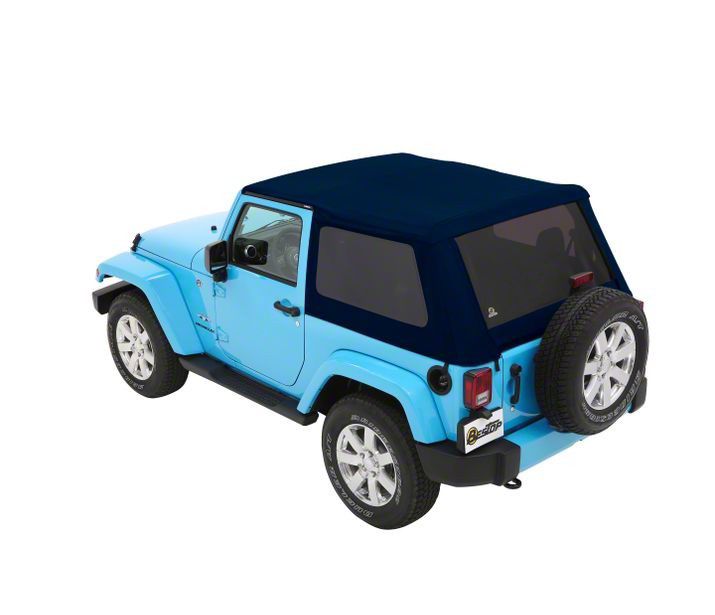 Application. This Blue Twill Bestop Trektop NX Plus Soft Top is designed to fit 2007-2018 Jeep Wrangler JK 2-door models.