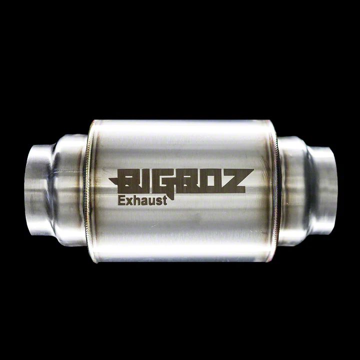 Sleek and Stylish. Don't settle for a mediocre ride - upgrade your car's sound and performance with the Bigboz Exhaust 5 Performance Muffler. Its compact and solid design measures 11 inches long, with a 2.50-inch inlet and outlet for universal fitment. Not only does this performance muffler look sleek and stylish, but it also delivers a roaring, forceful, and aggressive tone that will turn heads on the road. The sound improvement is achieved through the use of sound baffles, ensuring that your ride's sound will be just as impressive as its performance.