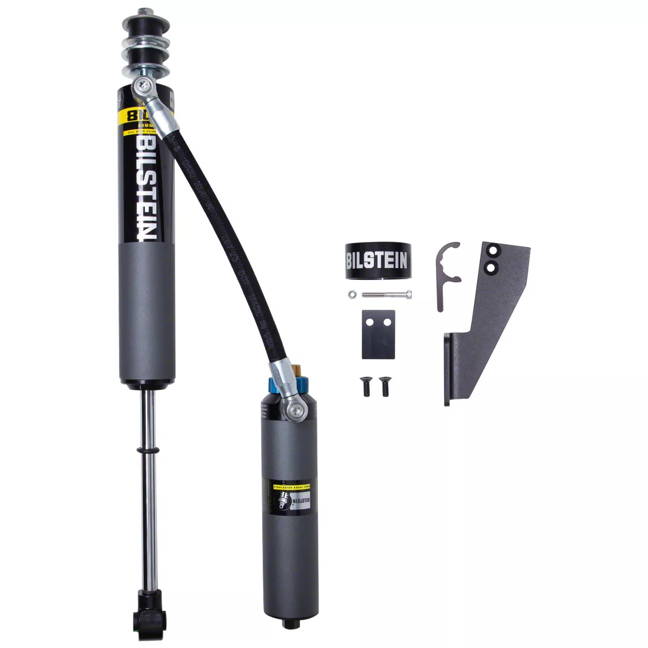The Bilstein B8 8100 (DSA) reservoir shock absorber is an adjustable large bore 60mm direct fit solution for lifted trucks and SUVs. Constructed from aerospace quality billet components, the large 60mm ID shock body offers a higher oil volume capacity to control heat while tackling rough road surfaces over long distances. Click adjuster knobs allow easy and precise Dual Speed Adjustment of both low and high speed compression to tailor your ride to any surface. Each B8 8100 (DSA) offers a unique remote or piggyback reservoir solution for an easy, hassle free installation. These shock absorbers feature a monotube design for consistent fade free performance and utilize velocity sensitive digressive valve settings which are tuned for each specific application. The large 60mm piston design offers more comfort and control in all driving conditions. The Bilstein B8 8100 (DSA) will allow you to tame the terrain in comfort.