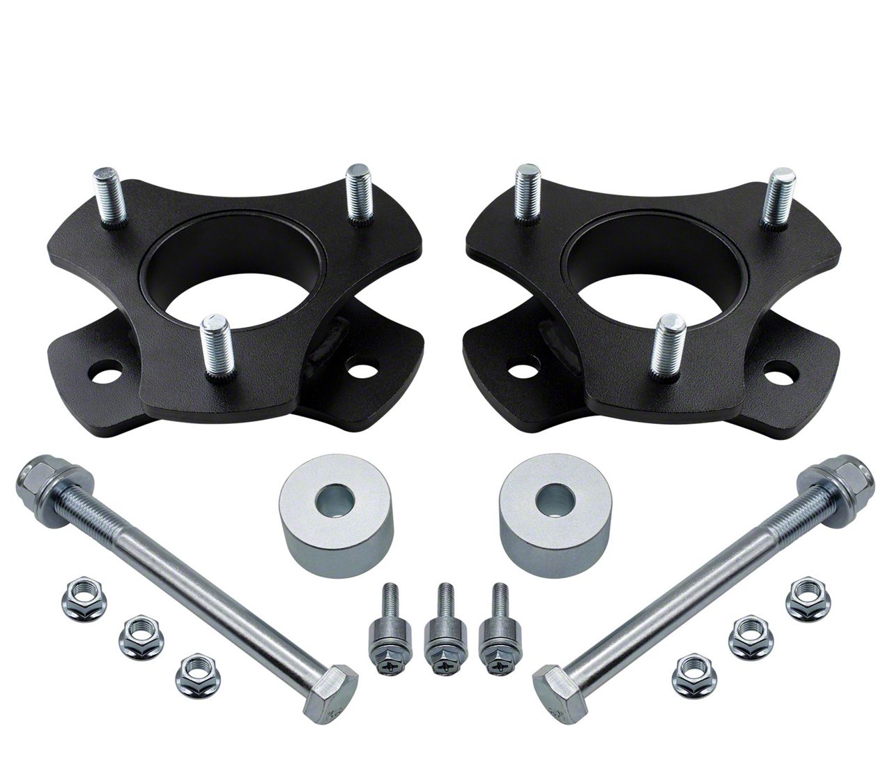 Impressive Front Strut Extension Leveling Kit. This product features quality strut extensions, and each one is crafted from a tough and long-lasting material. They also boast a sleek E-dip liquid powder-coated finish, which protects the struts from chipping, scratches, and abrasions.