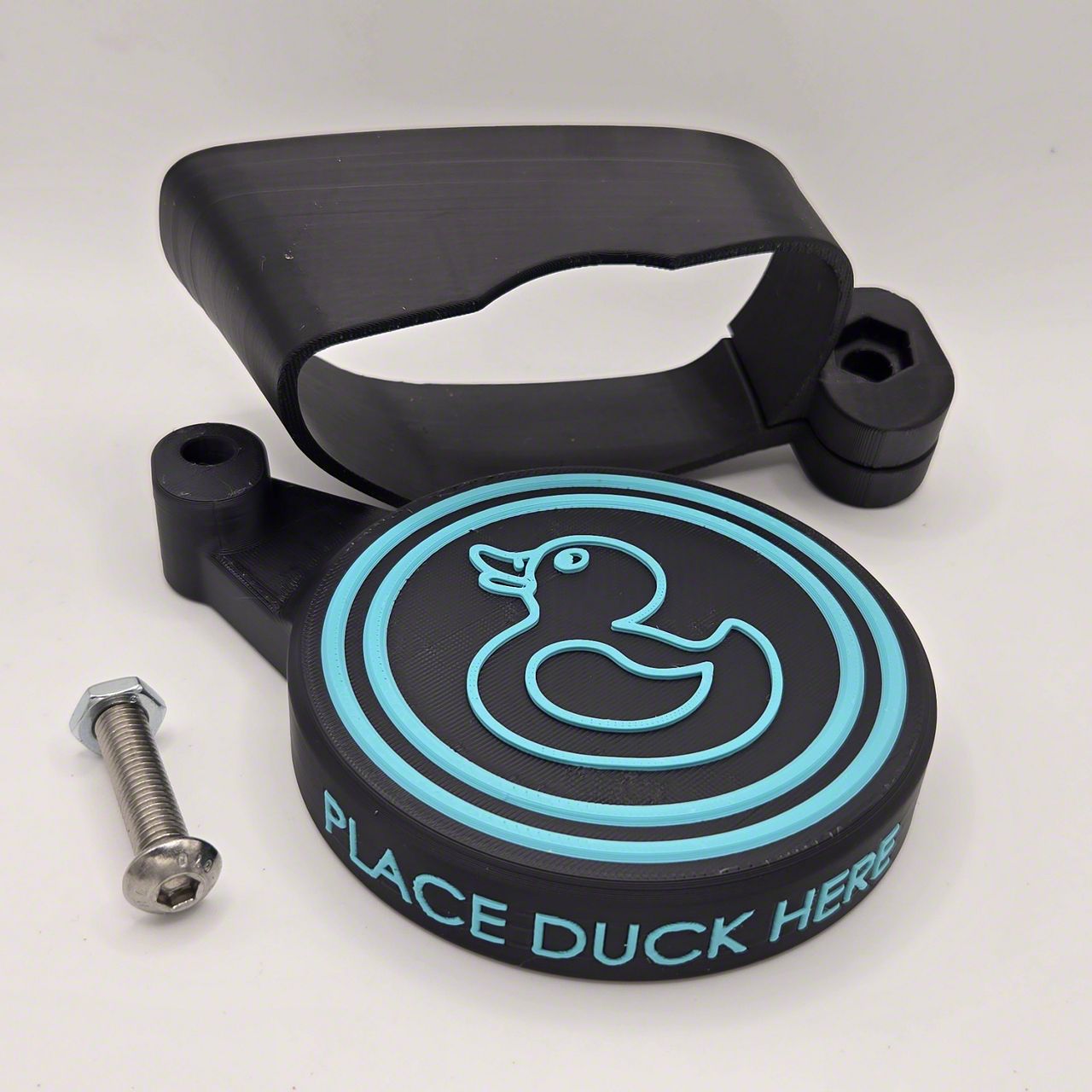 Construction and Appearance. Crafted from ASA (Acrylonitrile Styrene Acrylate) material, this Duck Deck is engineered for superior strength and resistance to UV exposure, weather, and harsh conditions. The matte black base contrasts sharply with the vibrant matte teal lettering, creating a head-turning look that complements the Jeep Gladiator’s tough aesthetic. The custom 3D printed build ensures precise shaping and a refined surface finish.