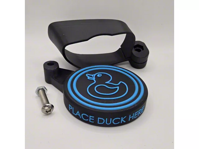 Unique and Stylish Jeep Accessory. The Bite the Bullet 3D Ultimate Duck Deck adds a custom touch to your Jeep Wrangler JL, providing a fun and stylish way to display your Jeep duck collection. Its bold neon blue lettering and matte black body make it a standout addition.