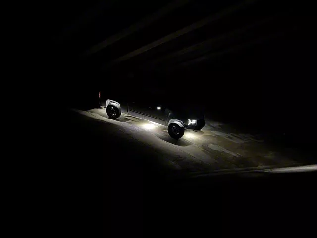Versatile LED Rock Lighting System. The Black Flag Lighting 36 LED Chip Pure White Rock Lights with Extensions provide brilliant underbody illumination for show vehicles, daily drivers, and off-road rigs. With 36 pure white LED chips per pod and magnetic mounts for quick placement, this eight-piece kit enhances visibility and style with remote, app, or switch control options and six built-in flashing modes.
