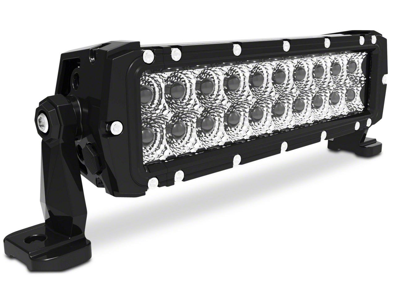 Thorough Design. This 10-inch light bar provides 60 watts of power and comes with a clean, black, powder-coated finish. This 1-piece bar contains a clear lens and 20 light emitting diodes (LEDs) that can light up the darkest night skies. It also boasts spot and flood beam combinations for added functional versatility. With its compact design and high-level performance, you can rely on this LED light bar to provide exceptional visibility that will help keep you safe in isolated places.