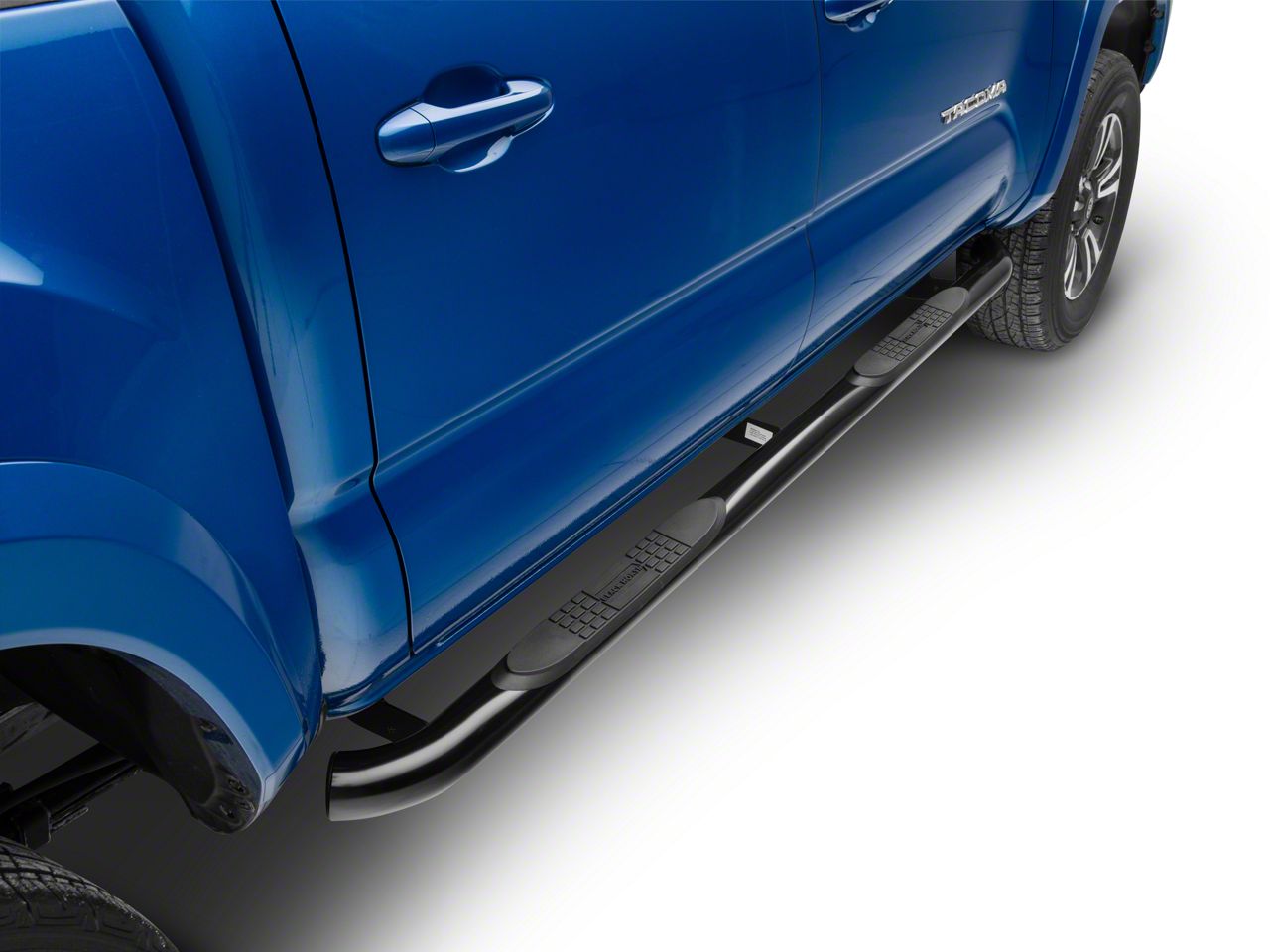 Application. These 3-Inch Round Side Step Bars in black are compatible with 2005-2023 Double Cab Toyota Tacoma models.