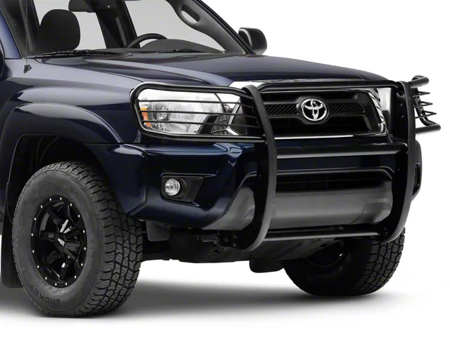 Provides Front End Protection. Gearing up with this Grille Guard in black helps provide front end protection to your Tacoma. With its heavy-duty grilles, your Tacoma's headlights, grille, and bumper are kept safe from cracks or scratches caused by damaging road debris.