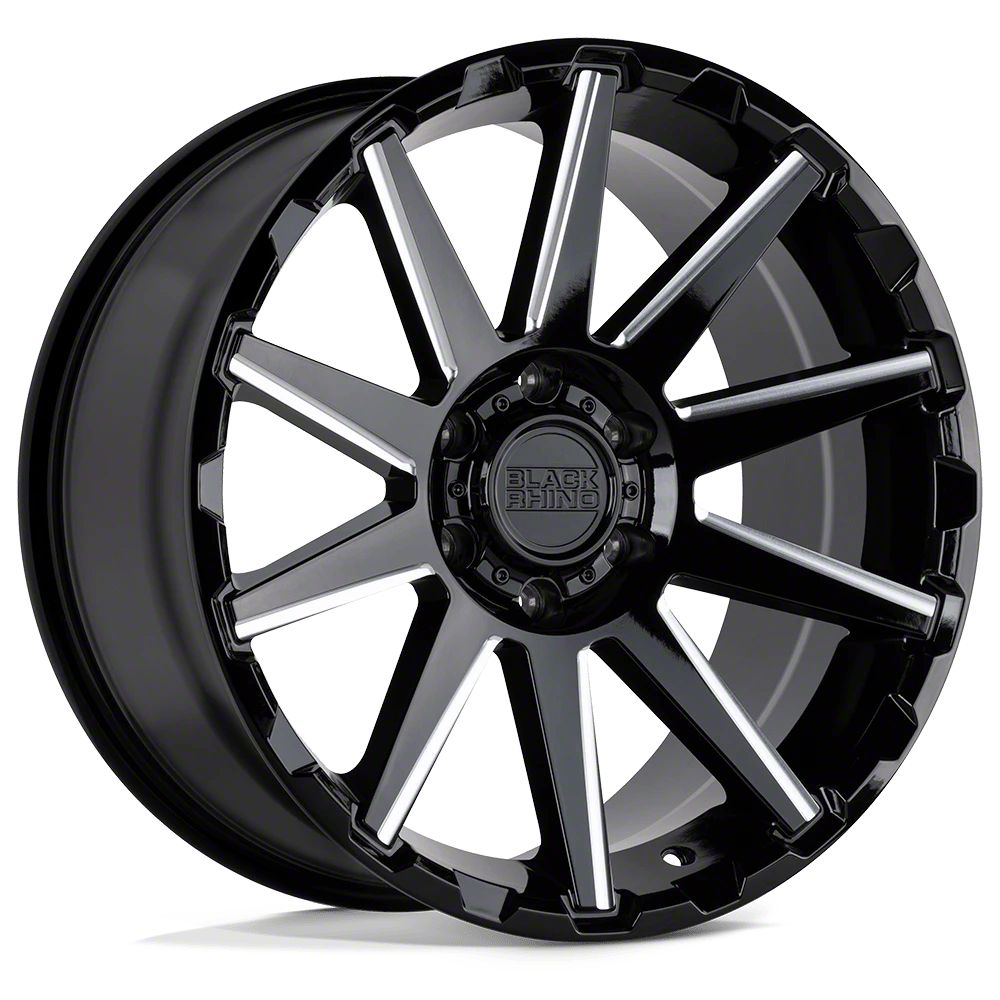 Black Rhino Typhoon Gloss Black with Milled Spokes 6-Lug Wheel; 20x9.5; 12mm Offset The Black Rhino Typhoon Gloss Black with Milled Spokes 6-Lug Wheel combines a sleek, sophisticated design with premium construction that enhances the visual appeal and complements a wide range of vehicle styles. This wheel is perfect for those seeking to make a bold statement while maintaining elegance and robustness.