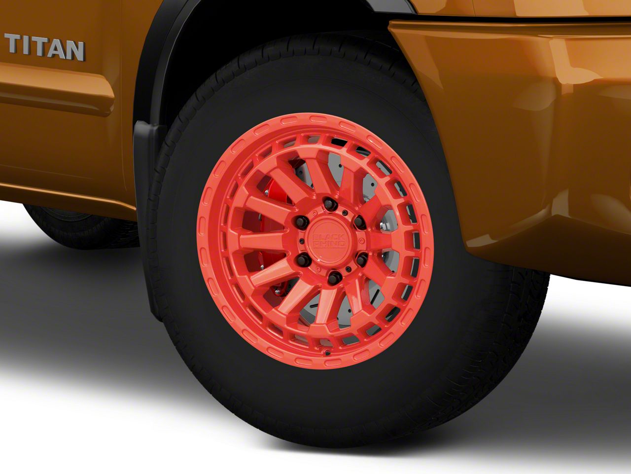 Application. This Black Rhino Raid Gloss Red 6-Lug Wheel; 18x9.5; 12mm Offset, with a backspacing of 5.723 Inch, 145.4mm and bolt pattern of 6 x 139.7mm (6 x 5.5-Inch), ensures precise alignment and stable driving. Designed to fit 2004-2015 Titan models, this wheel is sold individually.