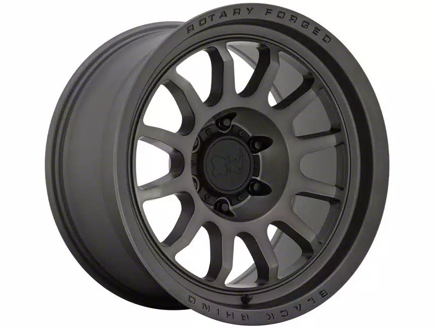 Matte Gunmetal Finish with Brushed Accents. This 18x8.5 Black Rhino Wheels Rapid Series Wheel is completed in a high quality gunmetal gray finish with brushed accents for a striking contrast in appearance that will make others green with envy. For added protection and good looks, this Wheel features a durable, matte clear coat that is tough enough to stand up against the hazards of everyday driving - including road chips and pitting.