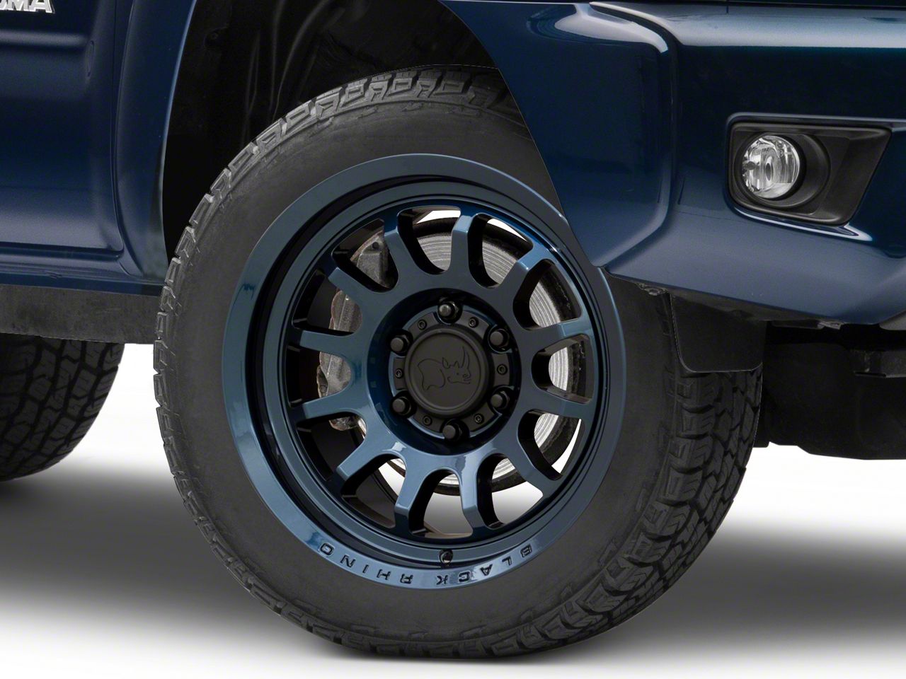 Application. This Black Rhino Rapid Midnight Blue 6-Lug Wheel; 20x9.5; -18mm Offset, with a backspace of 4.541 Inch, 115.3mm and bolt pattern of 6 x 139.7mm (6 x 5.5-Inch), is designed to provide not only a striking visual appeal but also to contribute significantly to the alignment and driving stability of the vehicle. Its specifications ensure a precise fit with the vehicle model, enhancing the overall driving experience. Built to fit the 2005-2015 Tacoma, this wheel is sold individually.