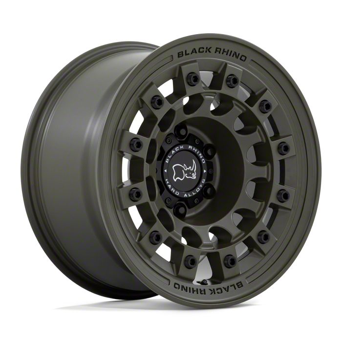 Black Rhino Fuji Olive Drab Green 6-Lug Wheel; 17x9; -12mm Offset. The Black Rhino Fuji Olive Drab Green 6-Lug Wheel; 17x9; -12mm Offset features a sleek and modern design that enhances the overall aesthetic of any vehicle. Its brushed gunmetal finish adds a touch of sophistication and complements various vehicle styles. This wheel's premium construction ensures durability and a robust appearance.