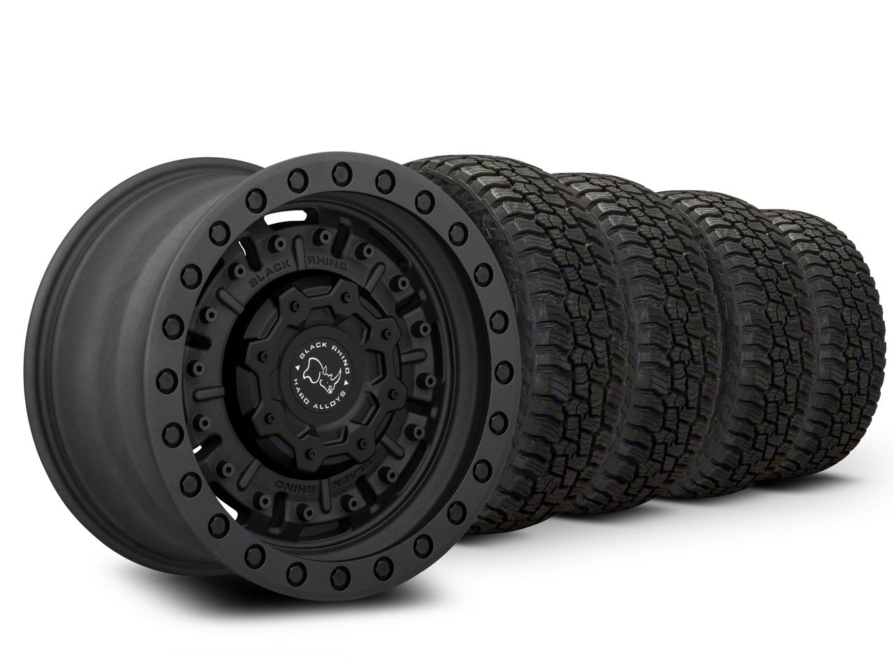 Mounted and Balanced Wheel and Tire Kit. This wheel and tire combo kit features (4) 17x9.5 Black Rhino Abrams Textured Matte Gunmetal Wheels and (4) Mickey Thompson Baja Boss A/T 37" - 37x12.50R17 tires that have been put together into an easy to buy kit that arrives to your door already mounted and balanced ready to be installed on your vehicle.