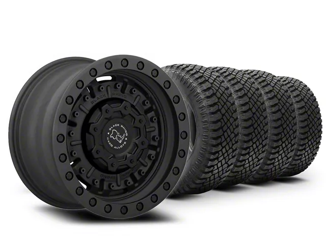 Mounted and Balanced Wheel and Tire Kit. This wheel and tire combo kit features (4) 17x9.5 Black Rhino Abrams Textured Matte Gunmetal Wheels and (4) Atturo Trail Blade X/T Multi-Terrain 35x12.50R17 tires that have been put together into an easy to buy kit that arrives to your door already mounted and balanced ready to be installed on your vehicle.
