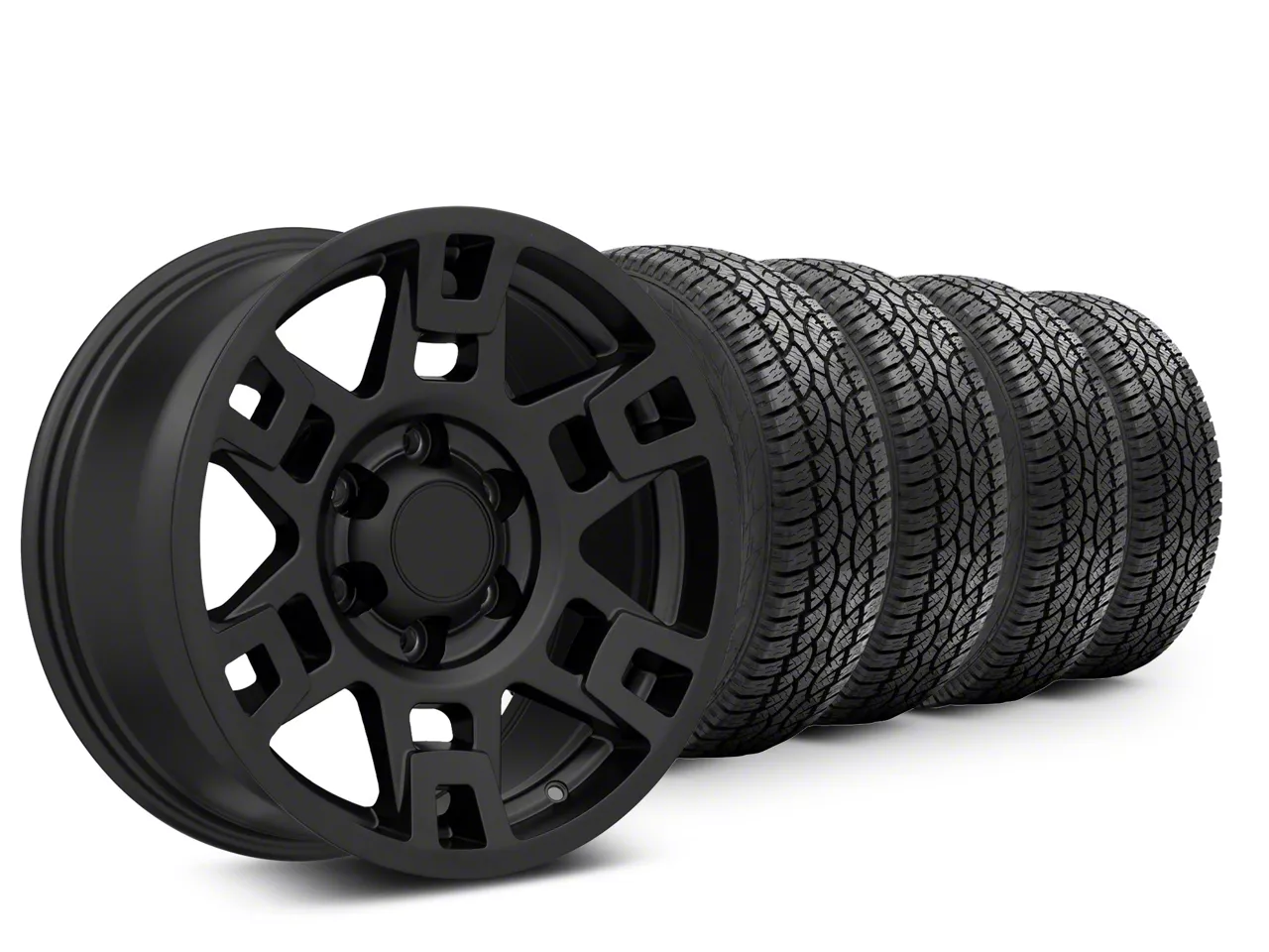 Mounted and Balanced Wheel and Tire Kit. This wheel and tire combo kit features (4) 17x8 TRD Style Matte Black Wheels and (4) Atturo All-Terrain Trail Blade A/T 32" - 265/70R17 tires that have been put together into an easy to buy kit that arrives to your door already mounted and balanced ready to be installed on your vehicle.