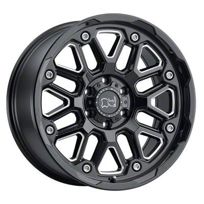 Black Rhino Hollister Gloss Black Milled Wheel; 20x9.5. The Black Rhino Hollister Gloss Black Milled Wheel offers a striking balance of style and refinement. Its unique design accentuates the vehicle's aesthetic, while the premium construction underscores its robust nature. This wheel is a perfect choice for those seeking both elegance and a strong visual statement.