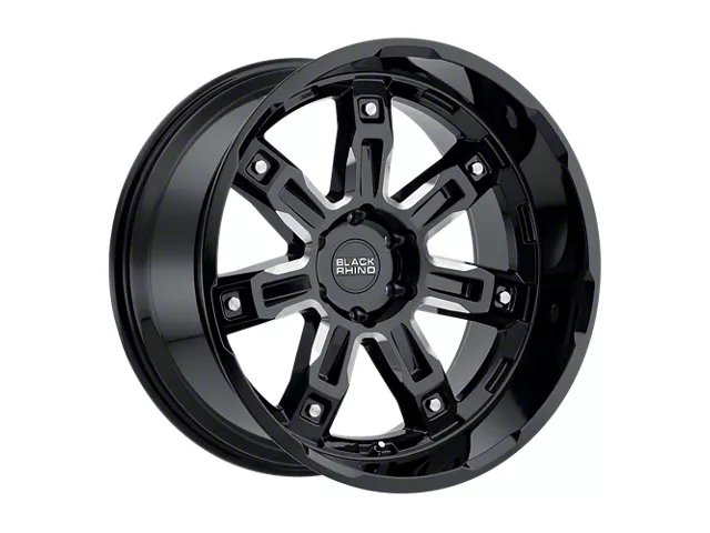 Black Rhino Locker Gloss Black with Milled Spokes Wheel; 20x8.5 The Black Rhino Locker Gloss Black with Milled Spokes Wheel combines a sleek, sophisticated design with premium construction that enhances the visual appeal and complements a wide range of vehicle styles. This wheel is perfect for those seeking to make a bold statement while maintaining elegance and robustness.