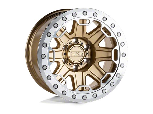 Black Rhino Rift Beadlock Matte Gold with Machined Ring Wheel; 17x8.5 The Black Rhino Rift Beadlock Matte Gold with Machined Ring Wheel combines a sleek, sophisticated design with premium construction that enhances the visual appeal and complements a wide range of vehicle styles. This wheel is perfect for those seeking to make a bold statement while maintaining elegance and robustness.