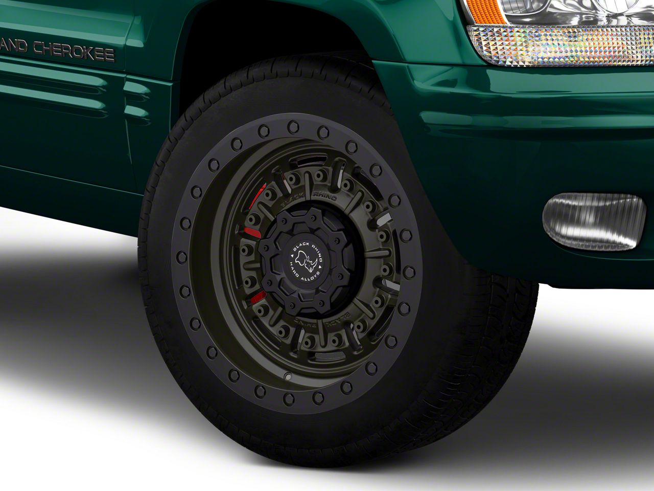 Application. This Black Rhino Abrams Olive Drab Green Wheel; 20x9.5 with a backspace of nan and bolt pattern of 5 x 127mm (5 x 5-Inch) ensures impeccable alignment and driving stability. It's designed to fit the 99-04 Jeep Grand Cherokee WJ models, sold individually.