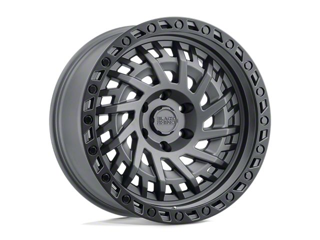 Black Rhino Shredder Matte Gunmetal with Black Ring Wheel; 20x9.5 This wheel offers a sleek and modern design that enhances the visual appeal of your vehicle. Its metallic gunmetal finish adds a touch of elegance and sophistication, making it a perfect fit for those who want to make a bold statement on the road.