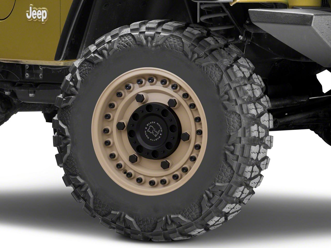 Application. This Black Rhino Armory Desert Sand Wheel; 16x8, with a backspace of 4.106 Inch, 104.3mm; and bolt pattern of 5 x 114.3mm (5 x 4.5-Inch), is designed to fit the 1997-2006 Jeep Wrangler TJ . The precise specifications of the wheel ensure proper alignment and driving stability, perfectly complementing the vehicle's model. Sold individually.