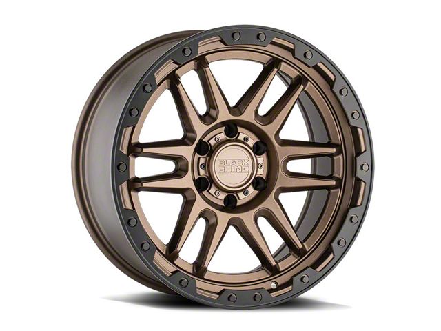 Black Rhino Apache Matte Bronze with Black Bolts Wheel; 20x9. The Black Rhino Apache Matte Bronze with Black Bolts Wheel offers a striking balance of style and refinement. Its unique design accentuates the vehicle's aesthetic, while the premium construction underscores its robust nature. This wheel is a perfect choice for those seeking both elegance and a strong visual statement.